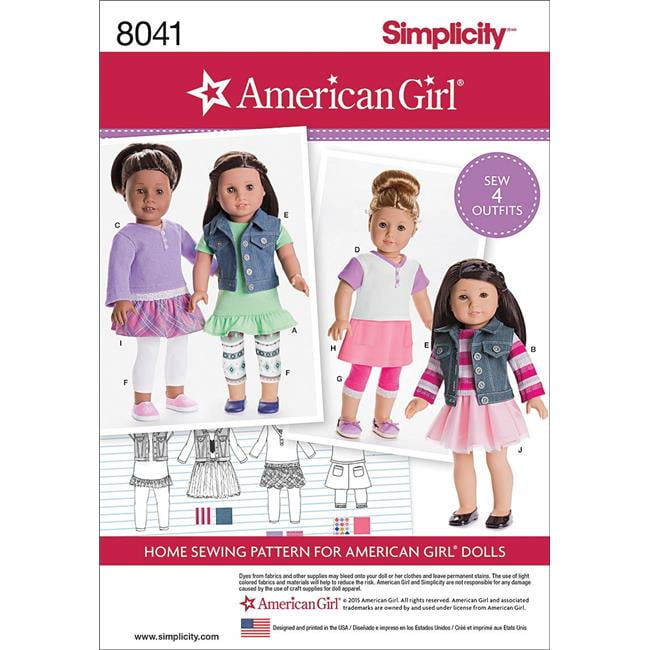 Simplicity Patterns Us8041os American Girl Doll Clothes For 18 Doll One Size Walmart Canada